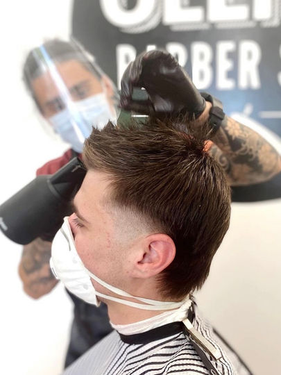 Detailed haircut followed by a blow dry style, hair product then finished with a straight razor neck shave